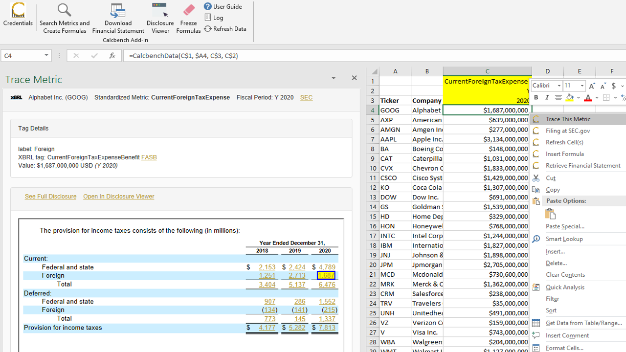 Calcbench is taught in conjunction with the following classes: data analytics, financial accounting (intro to advanced), managerial accounting, accounting information systems, financial statement analysis, audit & tax, investments, valuation, corporate finance, financial statement analysis, and more.