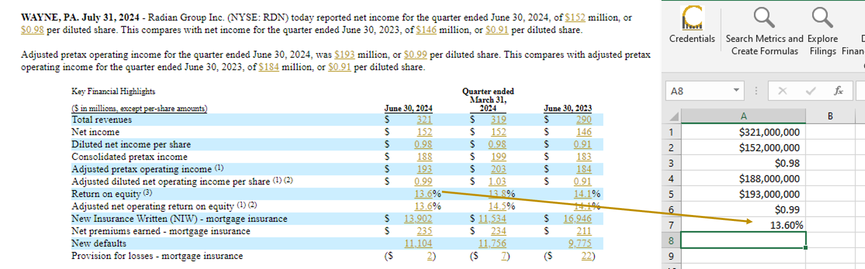 Easily build and update models in Excel JUST BY CLICKING on numbers in Earnings Releases:
