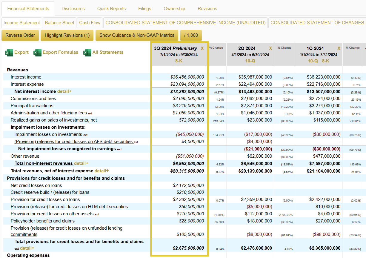As-reported earnings release data merged into historical financials within minutes of release: