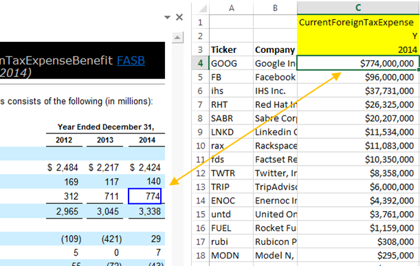 Or, launch the disclosure viewer to click numbers directly from an SEC document to populate your spreadsheet.