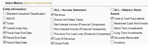 Easily query raw XBRL data from our database *Additional Subscription Required