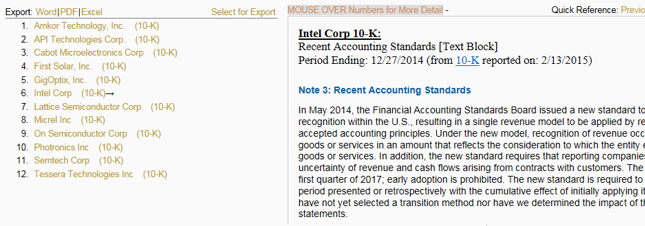 Search & export geographical and operating segment detail, tax data, fair value, and more